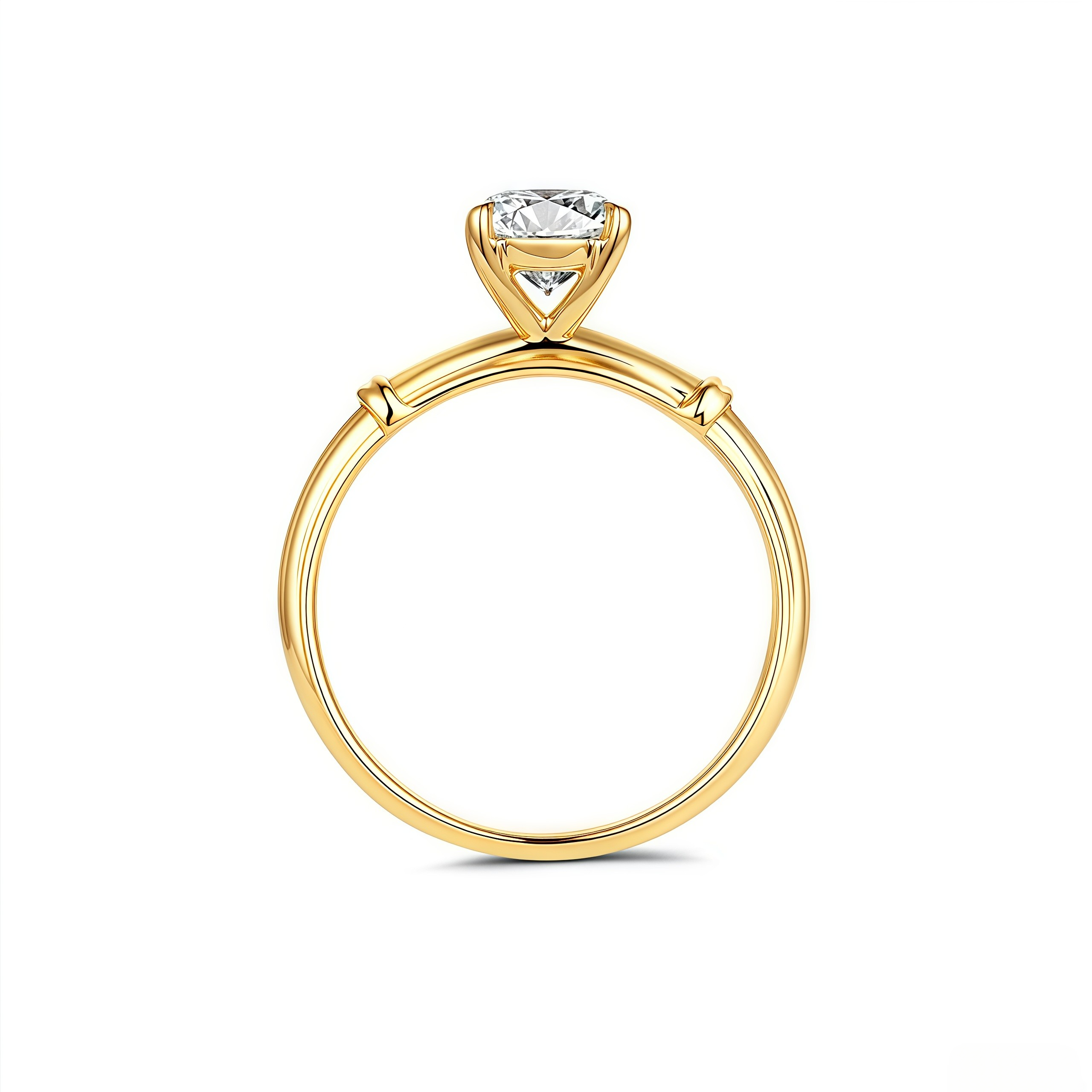 The Elegant Oval - Cut Diamond Engagement Ring in 18K Yellow Gold highlights a magnificent oval - cut central diamond, held by delicate 18K yellow gold prongs to boost its dazzling glow. The 18K yellow gold band has a unique, sophisticated design with smooth lines, perfectly complementing the oval diamond. Blending timeless elegance and modern charm, every detail, from the diamond's precise cut to the band's exquisite craftsmanship, reflects exceptional artistry, making it a perfect symbol of everlasting love.