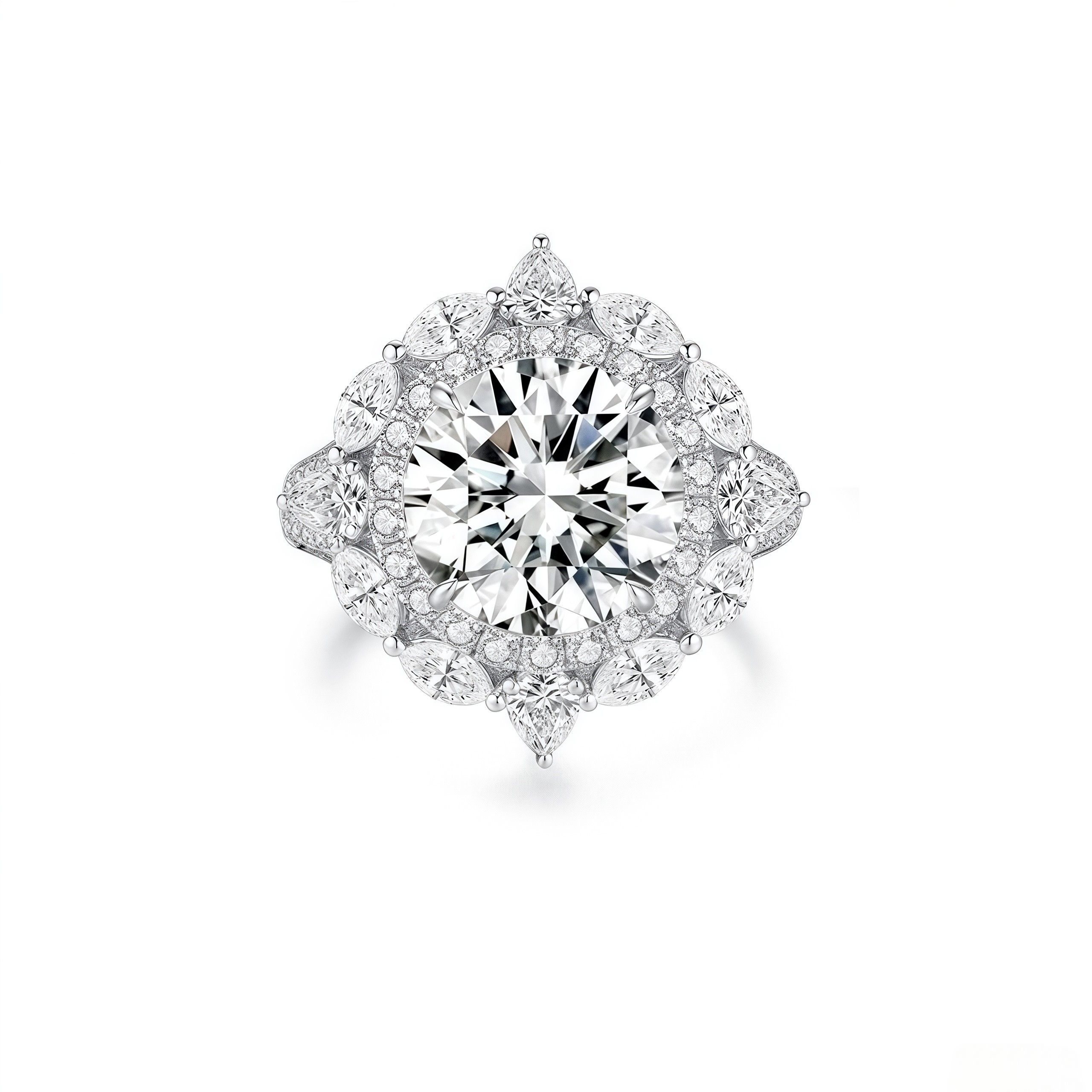 The Regal Halo - Set Diamond Engagement Ring showcases a stunning round - cut central diamond, encircled by a magnificent halo of marquise and round diamonds. These accent diamonds, along with additional sparkling stones on the band, create a rich and luxurious appearance. Crafted with gleaming white gold, the ring exudes an air of grandeur and timeless beauty. Every detail, from the precise arrangement of the halo diamonds to the smooth finish of the band, reflects exceptional craftsmanship, making it a perfect symbol of a love that's as radiant and enduring as the diamonds themselves.