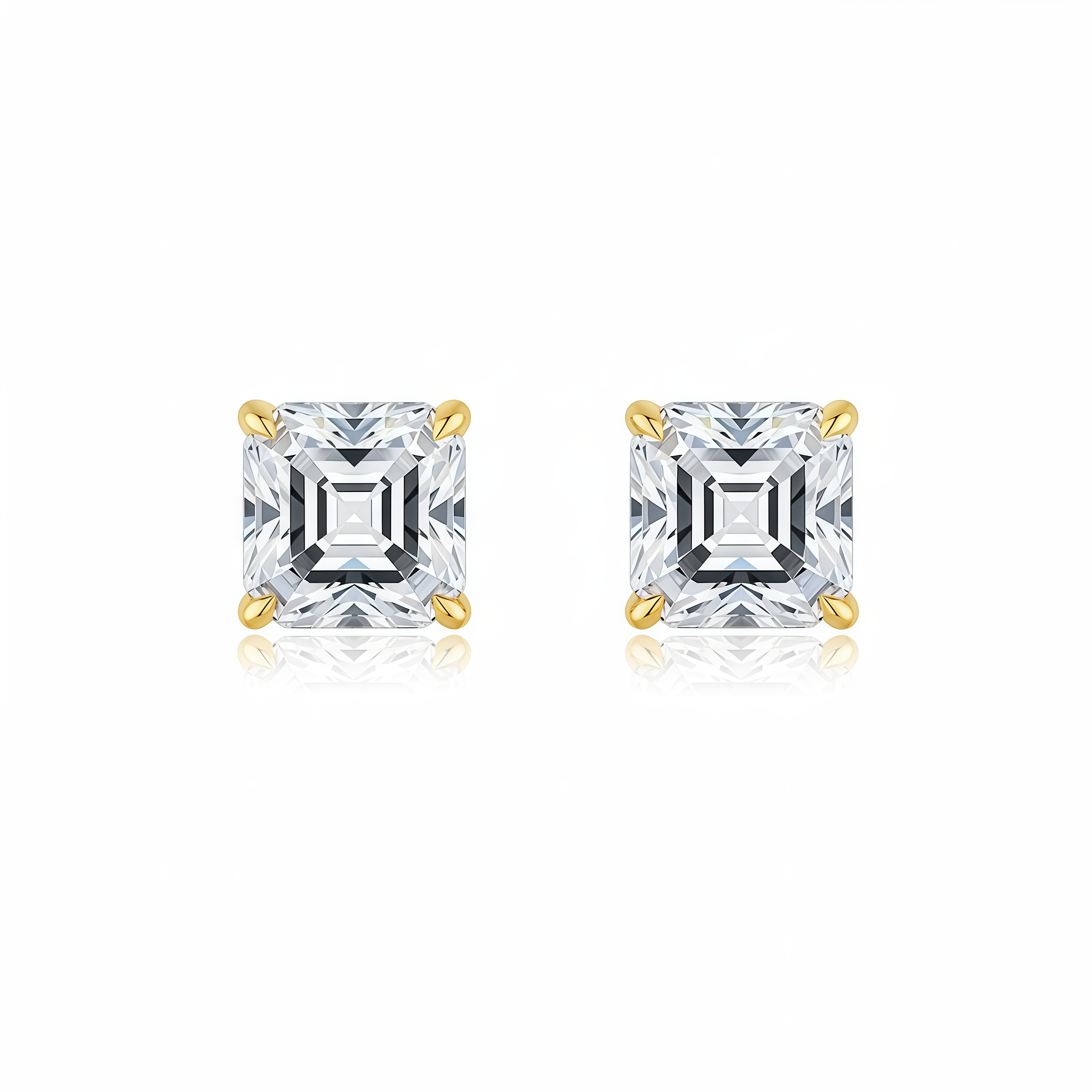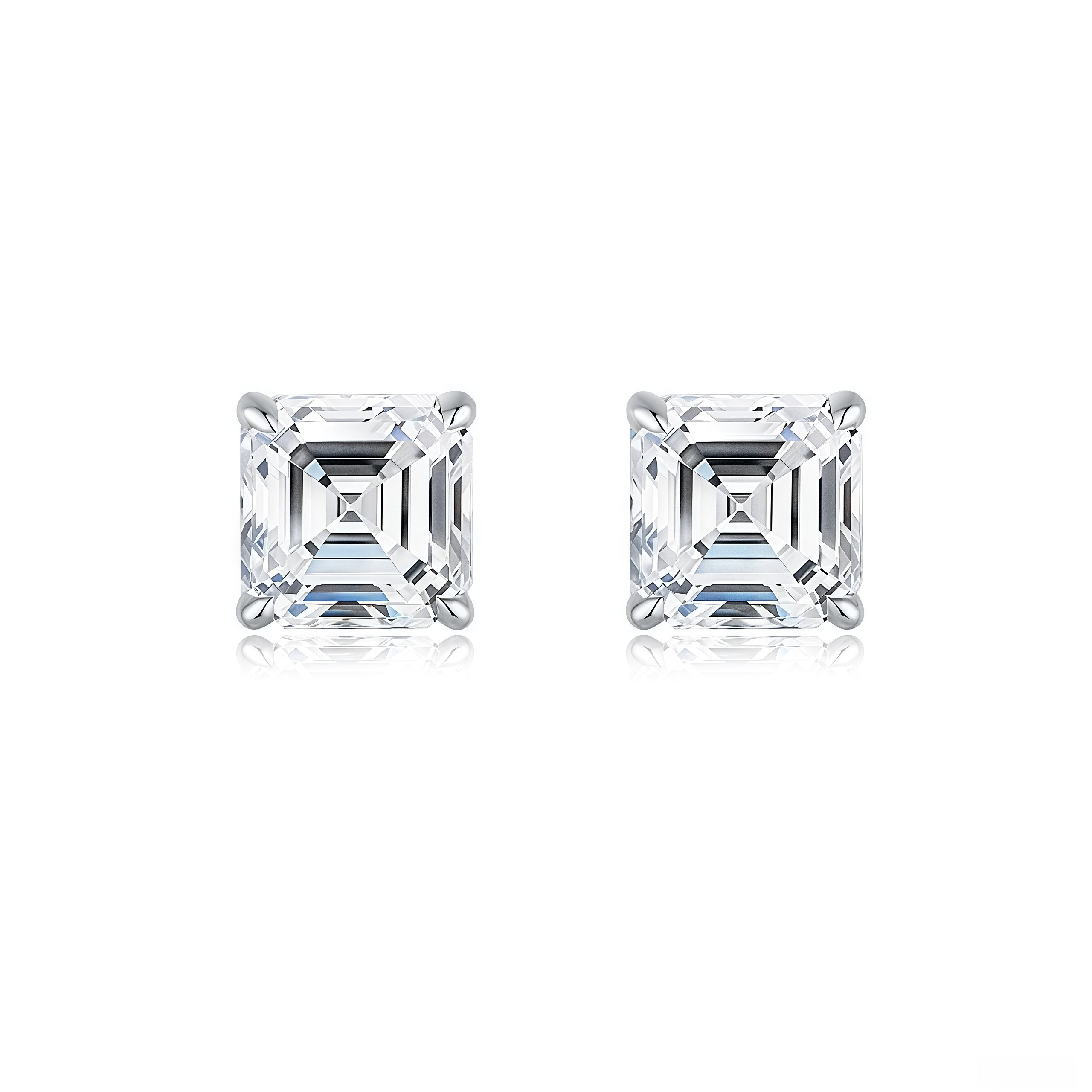 Vintage charm, reimagined. These distinctive studs feature the iconic Asscher cut, known for its deep, mesmerizing step-cut facets and square silhouette with cropped corners. Reminiscent of the Art Deco era, they offer a clear, rhythmic flash of light that exudes understated sophistication.