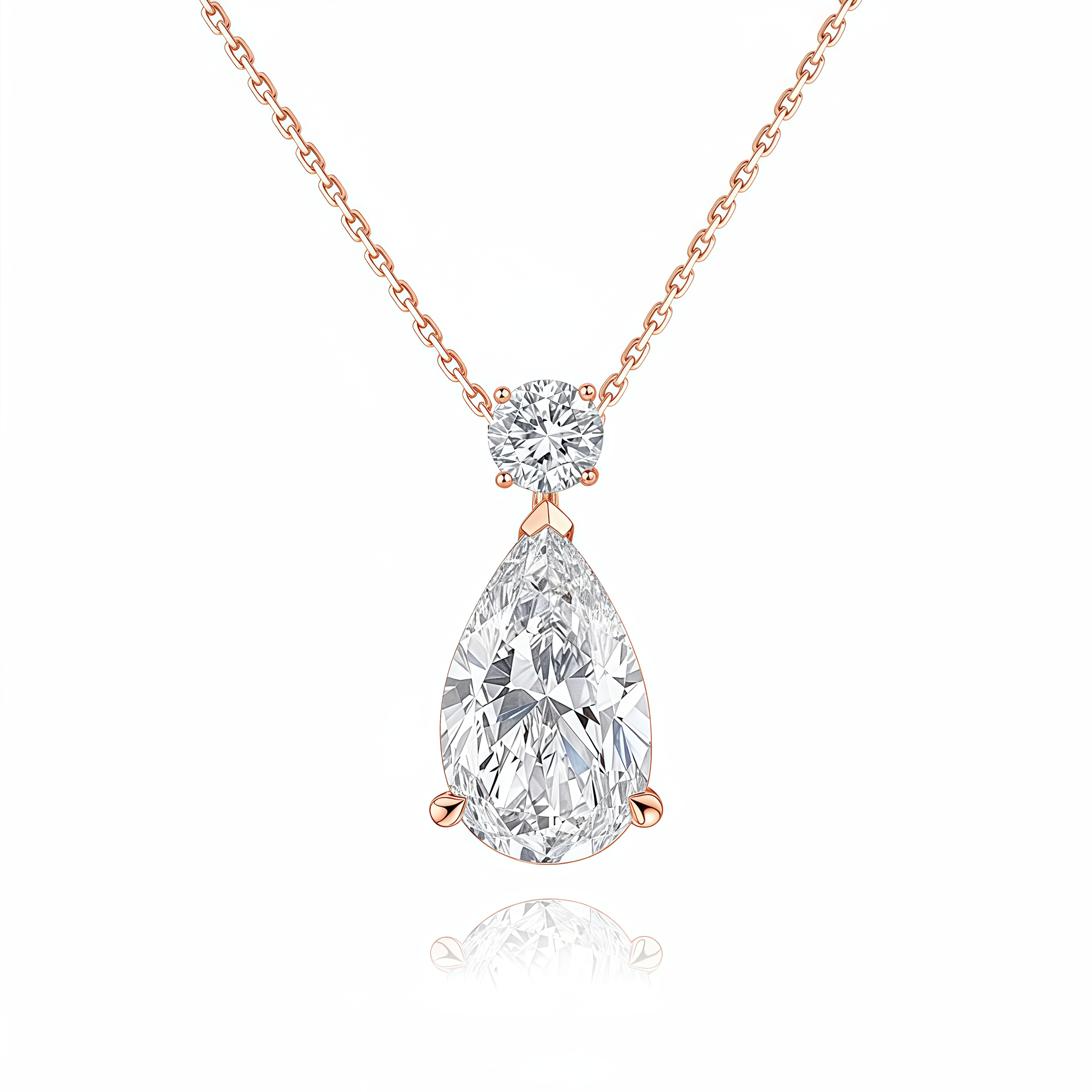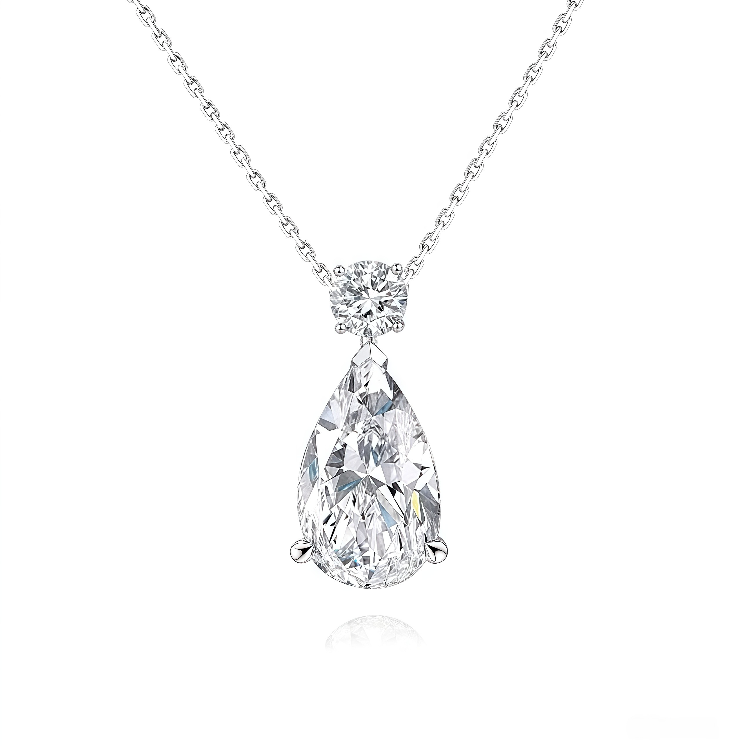 Graceful and sophisticated. This stunning pendant features a brilliant pear-shaped stone suspended from a round accent diamond*, creating a fluid "teardrop" silhouette that beautifully elongates the neckline. Whether worn with a V-neck or over a high collar, it adds a touch of timeless sparkle to any look.