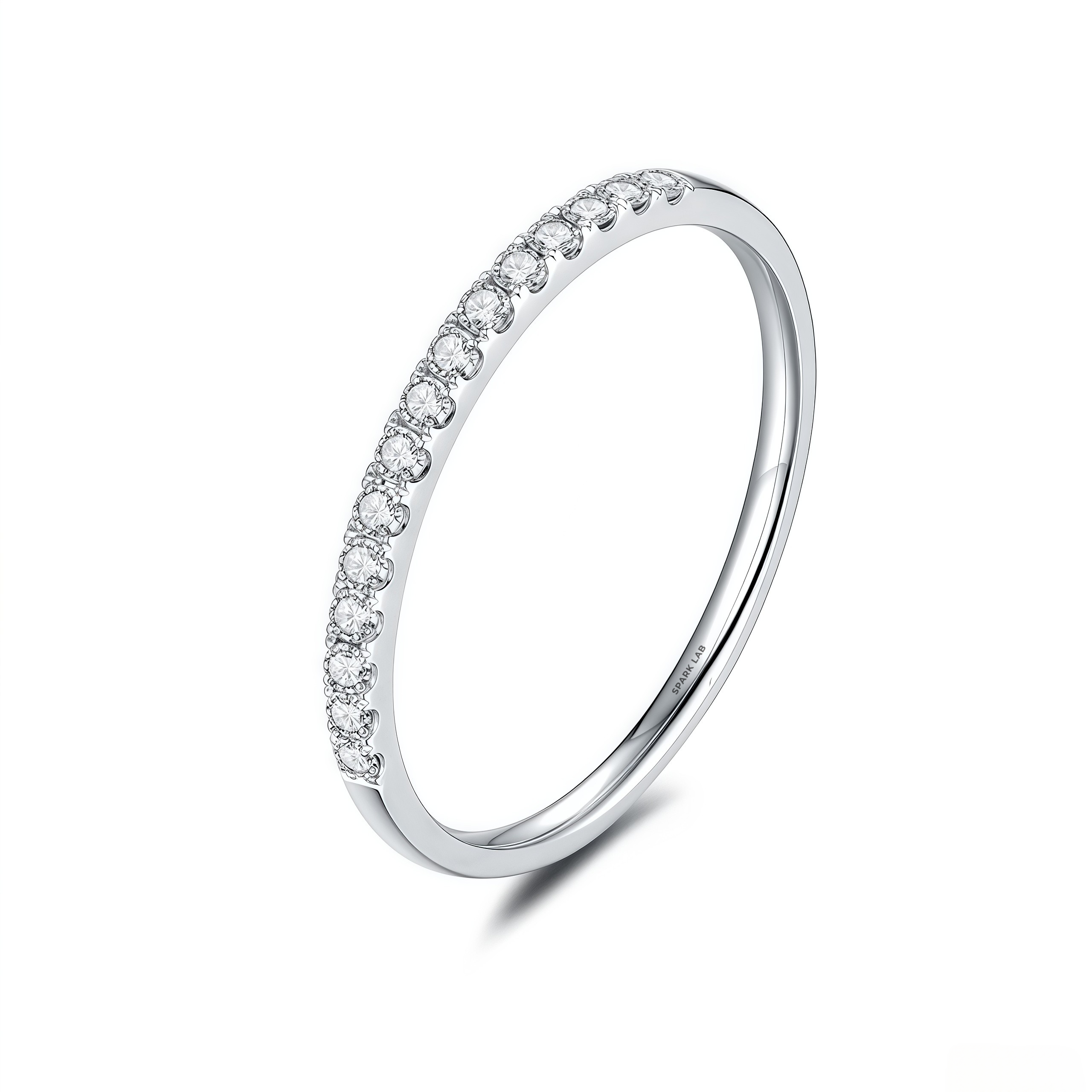 Your everyday dose of sparkle. This petite ring showcases a shimmering line of diamonds* in a low-profile setting that won't snag on clothing. Whether you're building a unique ring stack or looking for a subtle statement piece, this band adds a touch of effortless luxury to any look.