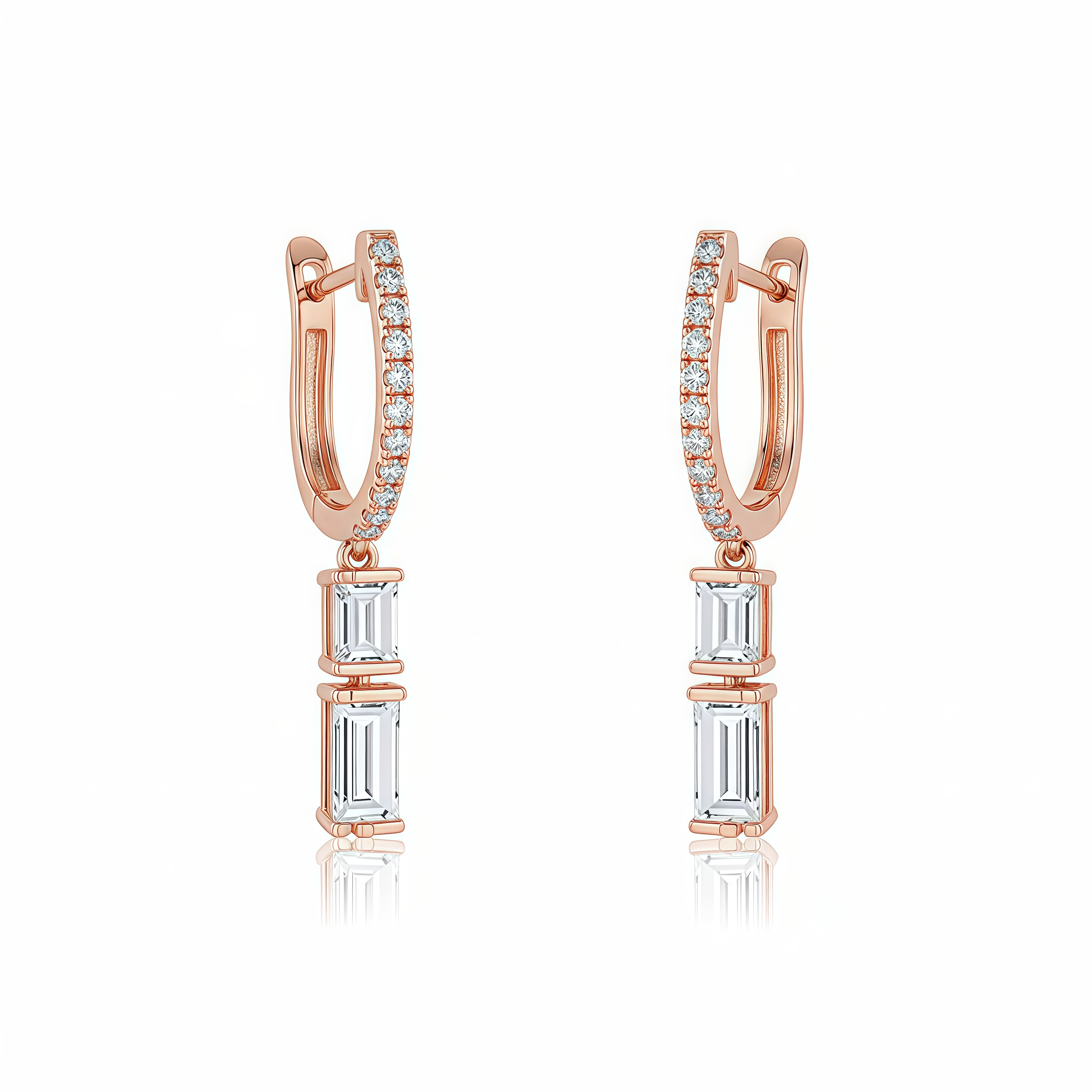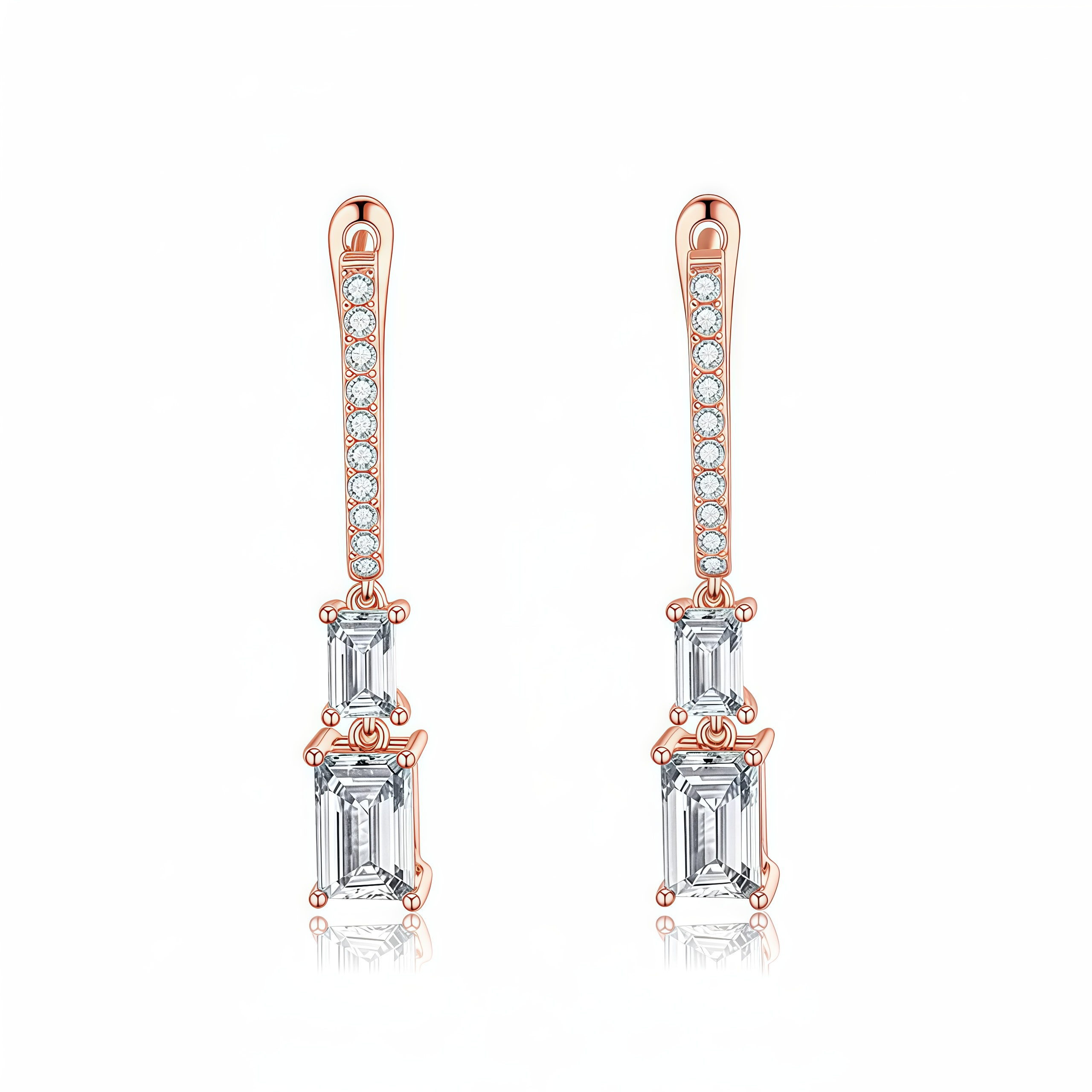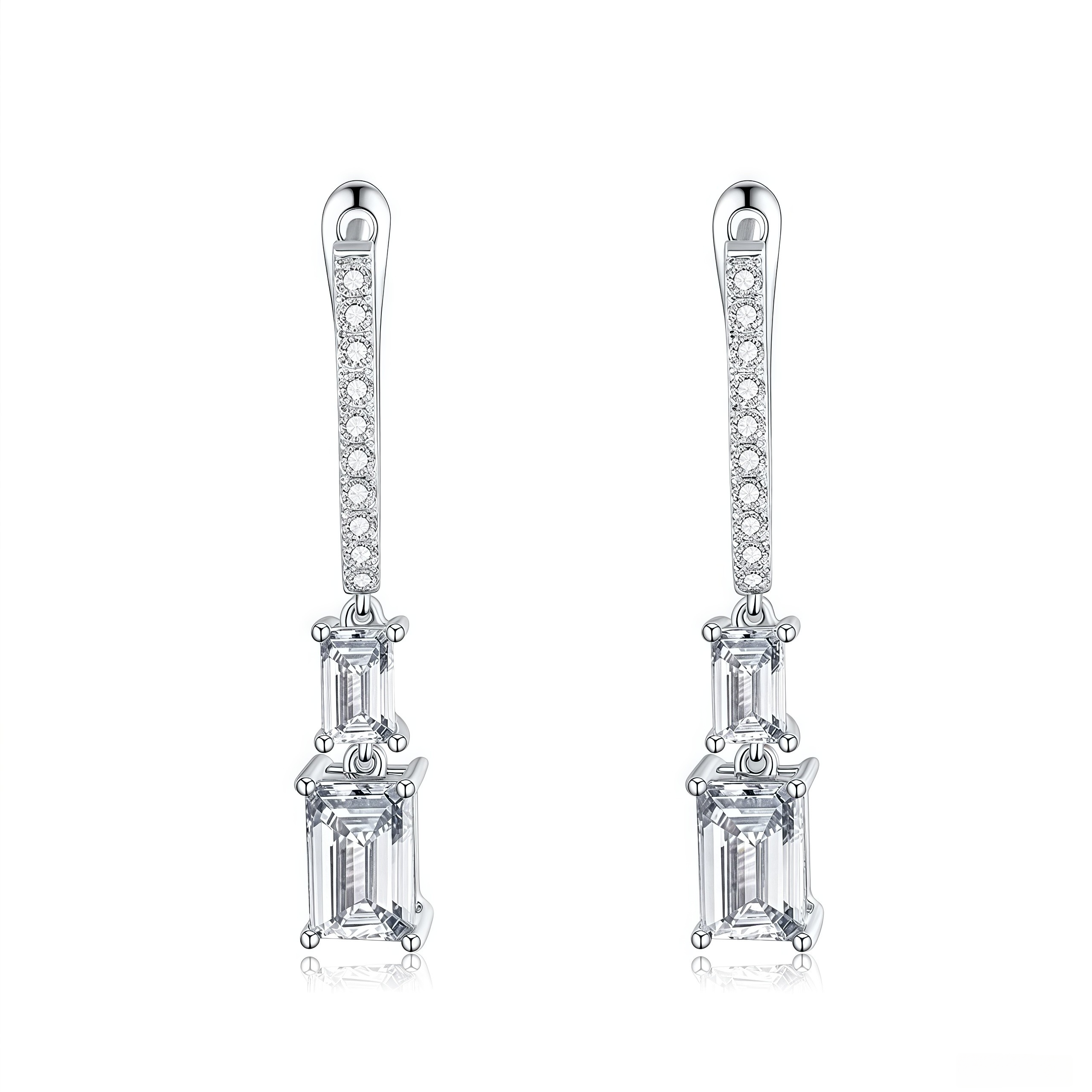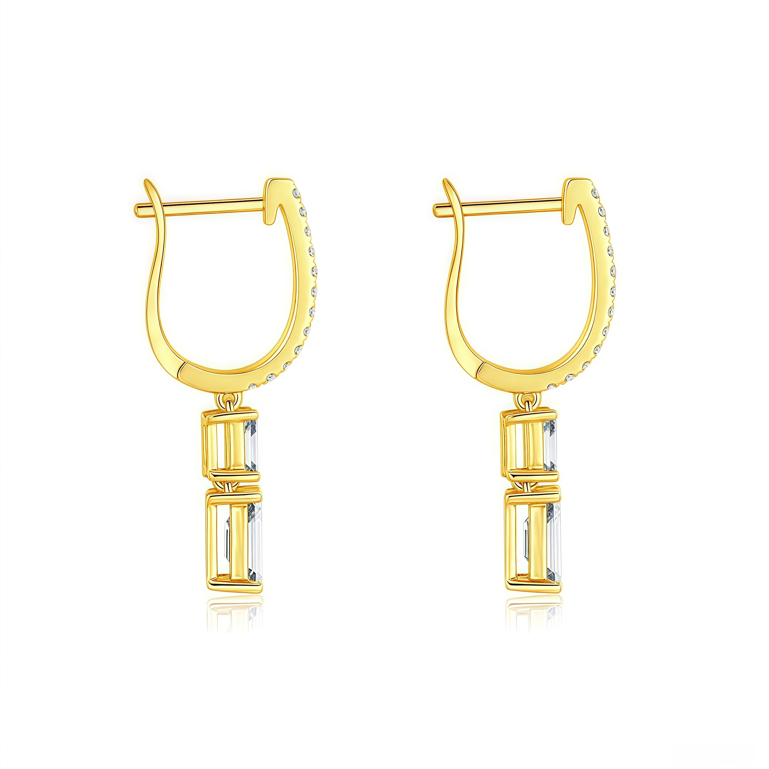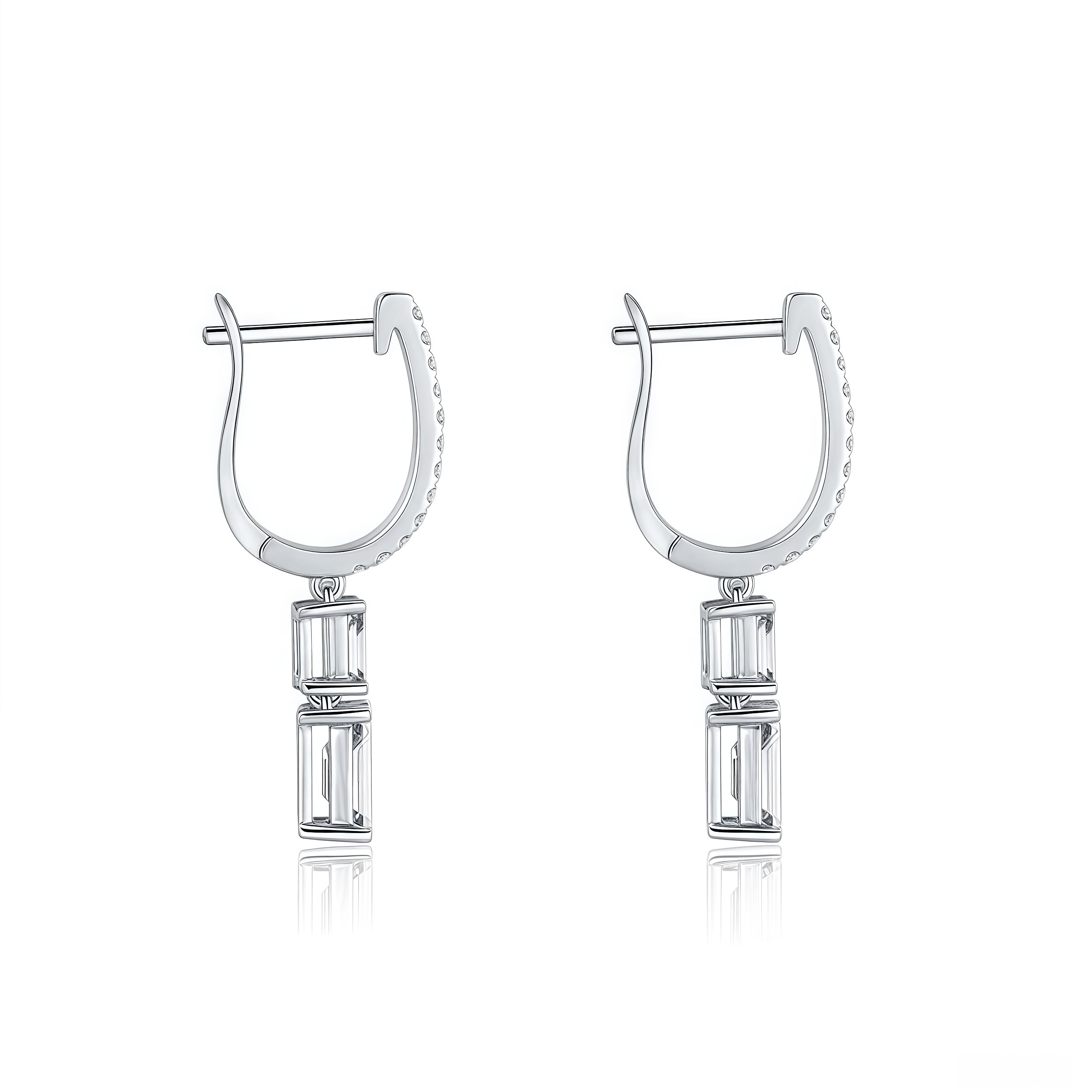 Sophistication in motion. These exquisite earrings feature a pave-set huggie top that suspends a cascade of two graduated emerald-cut stones. The step-cut facets create rhythmic flashes of light with every turn of the head, offering a sleek, elongating silhouette that frames the face beautifully.