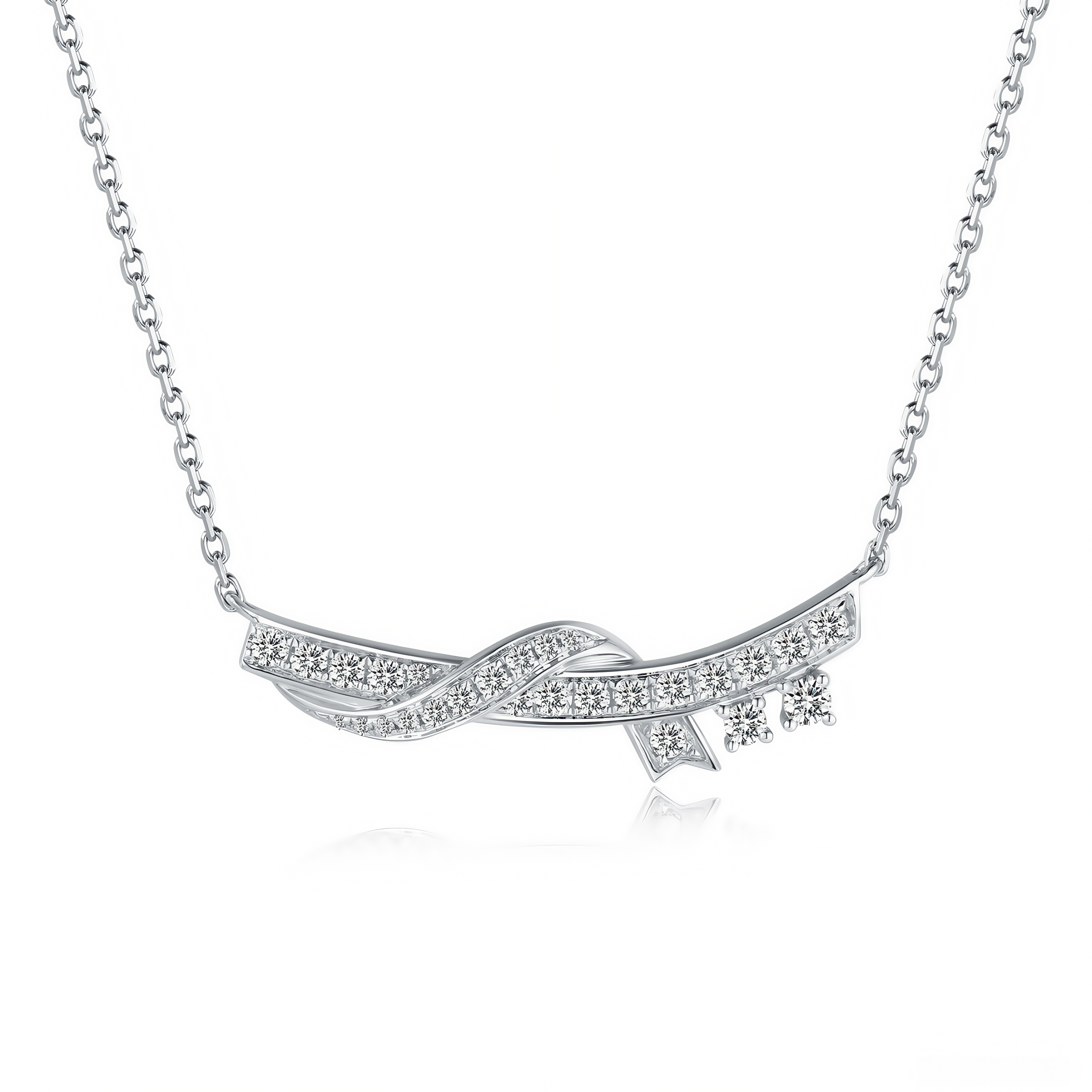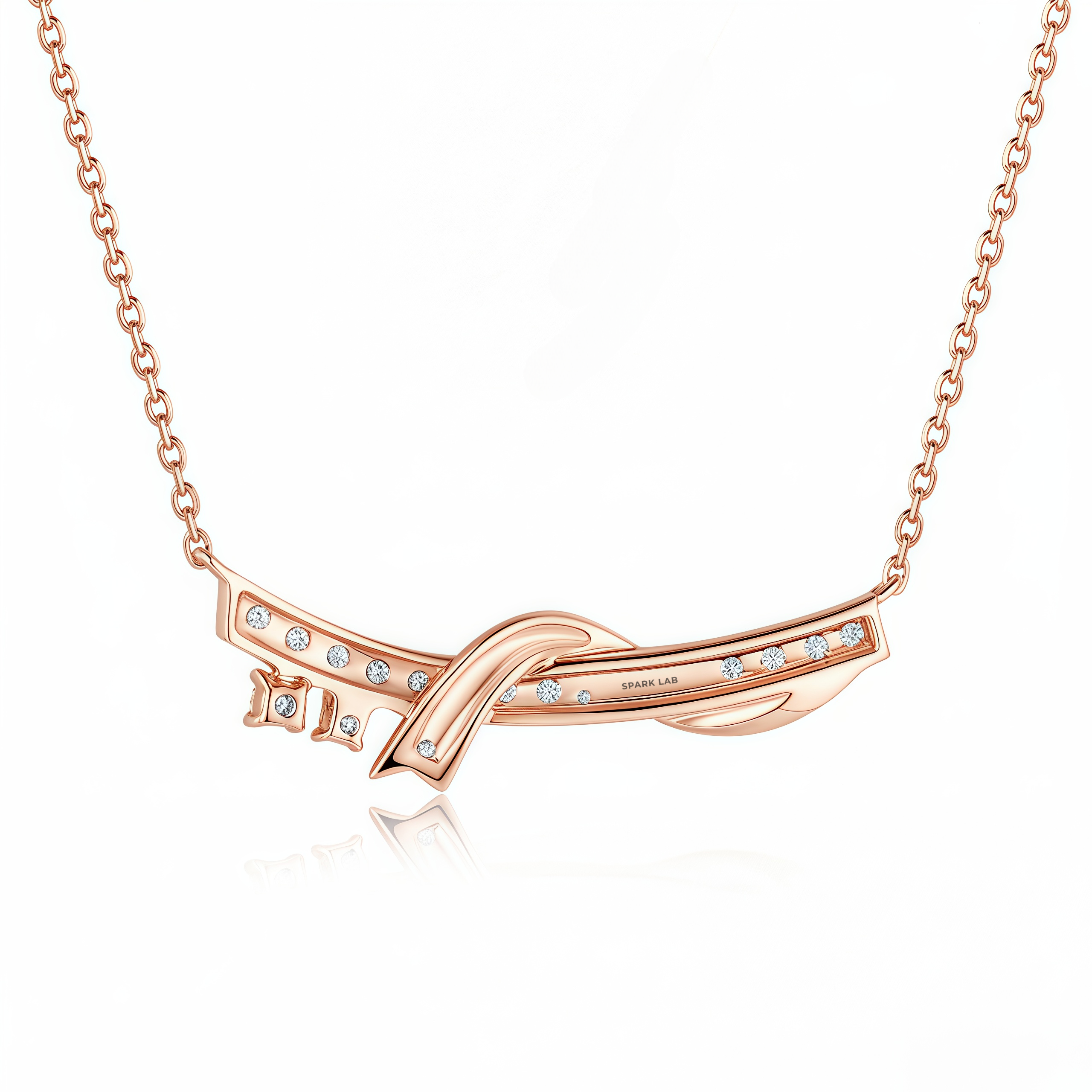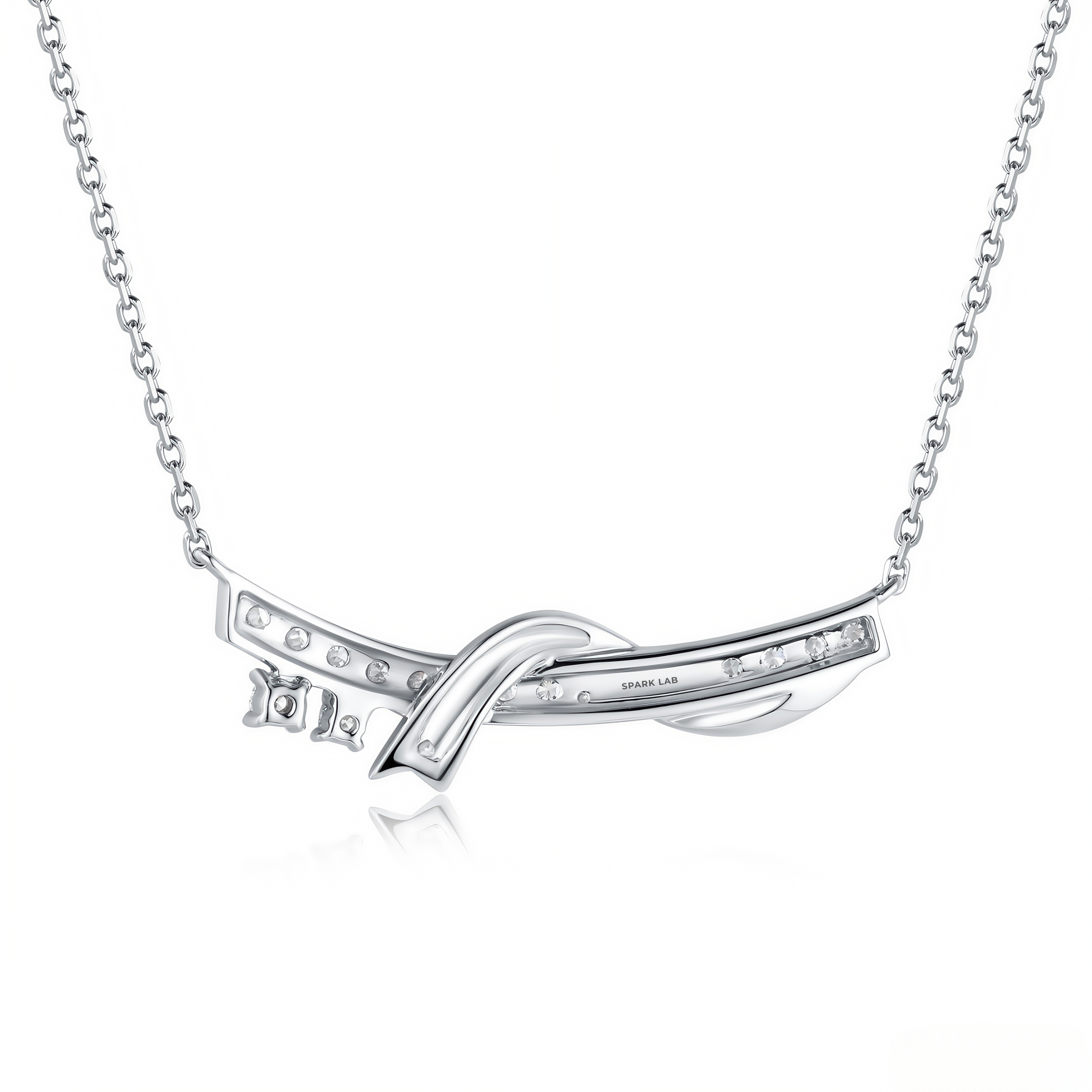 A symbol of unbreakable bonds. This modern update to the classic bar necklace features a central diamond-encrusted knot, representing connection and love. Its gentle curve complements any neckline, making it a meaningful gift or a treasured addition to your own jewelry collection.