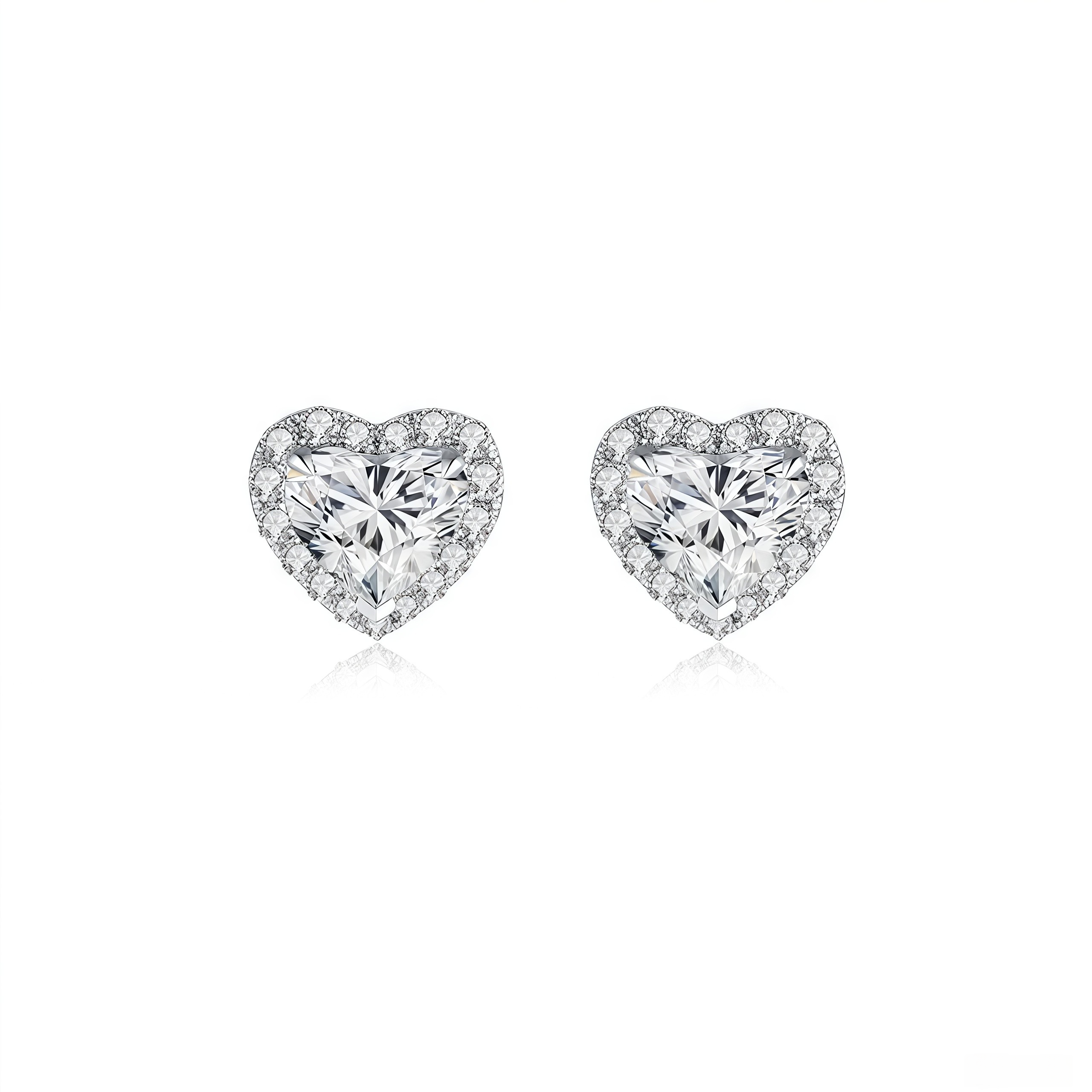 Love is in the details. These enchanting studs feature brilliant heart-shaped stones framed by a halo of shimmering accents, creating a look that is both sweet and sophisticated. Designed to catch the light with every turn, they are the perfect match for our heart pendant or a standalone symbol of affection.